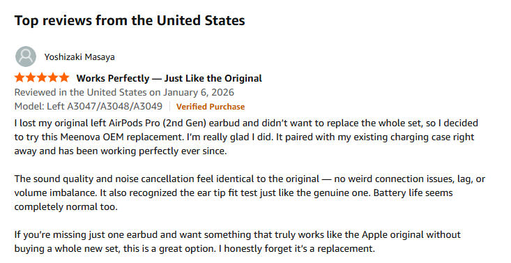 Meenova OEM Right Earbuds Replacement for AirPods Pro 2 (A3047/A3048/A3049) – Full Review