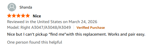 If you’ve lost or damaged your right AirPod, the Meenova OEM Right Earbud Replacement for AirPods Pro 2nd Generation is a cost-effective and practical solution. Instead of buying a brand-new set, this single replacement earbud restores your listening experience at a much lower price.